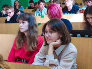Діна Бернацька згадала, як починала кар’єрний шлях ведучої та поділилася зі студентами порадами. «Я ніколи не думала, що стану ведучою, адже, як і всі, думала, що це щось захмарне, нереальне. В дитинстві взагалі мала проблеми з мовою та й навчалася на юридичному, але мала амбітні цілі, тому постійно тренувалася, багато читала і займалася саморозвитком», – поділилася ведуча і додала, що кожен може вийти із зони комфорту і стати тим, ким хоче, адже наш світ дає усі можливості, щоб розвиватися і якщо у вас щось добре виходить – вас обов’язково помітять. Головне – бути впевненими в собі, бо впевненість – це дуже важливо.